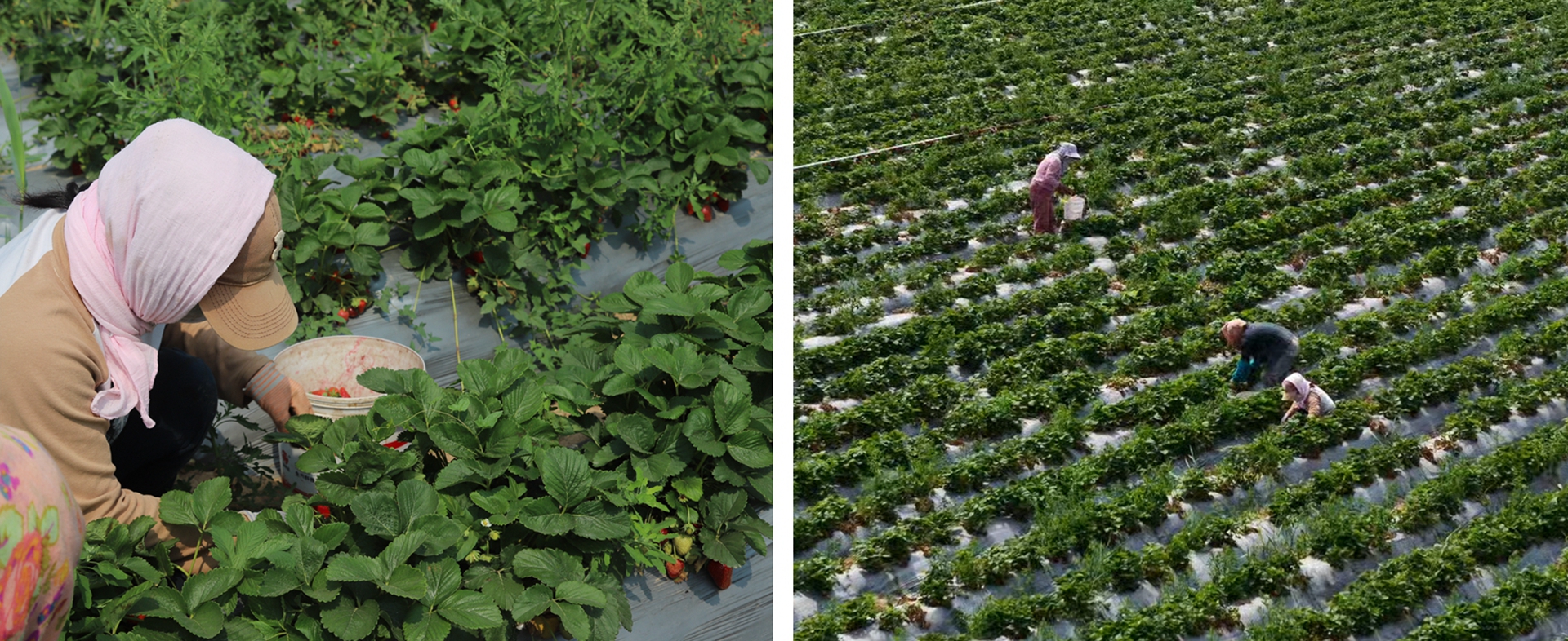 50余畝的草莓種植區(qū),彌漫著清甜的果香。博華種植基地采用水肥一體化滴灌技術(shù),以農(nóng)家有機(jī)肥作底肥,鋪膜防草,整個(gè)草莓生長(zhǎng)過(guò)程不打催熟劑自然成熟,實(shí)現(xiàn)生態(tài)種植。一壟壟油綠秧苗生機(jī)勃勃,一畦畦草莓長(zhǎng)勢(shì)喜人,今年試種的草莓品種是CF1,采摘期可從5月持續(xù)至6月,將主要用于果粉、凍干等產(chǎn)品的深加工。